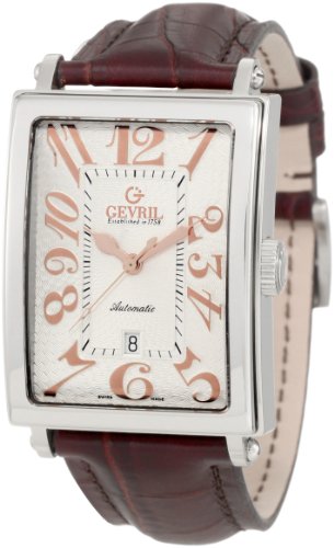 HOT PRODUCT TODAY Gevril Men's 5005A Avenue of America Swiss Automatic Rose-Gold Brown Leather Watch